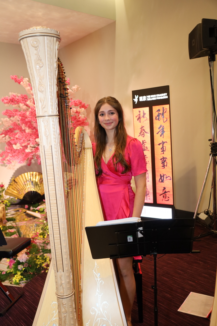 The grand finale was the “Golden Snake Dance,” a dynamic blend of Chinese and Western instruments, heralding the arrival of the Year of the Snake. The opening performance featured lion dance with Chinese traditional instruments pipa and percussion performance. It was followed by Chinese folk dance, sand art by Hong Kong sand-painting artist, and a special duet of the Chinese folk song “Jasmine Flower”, featuring a Ukrainian soprano and a harpist.