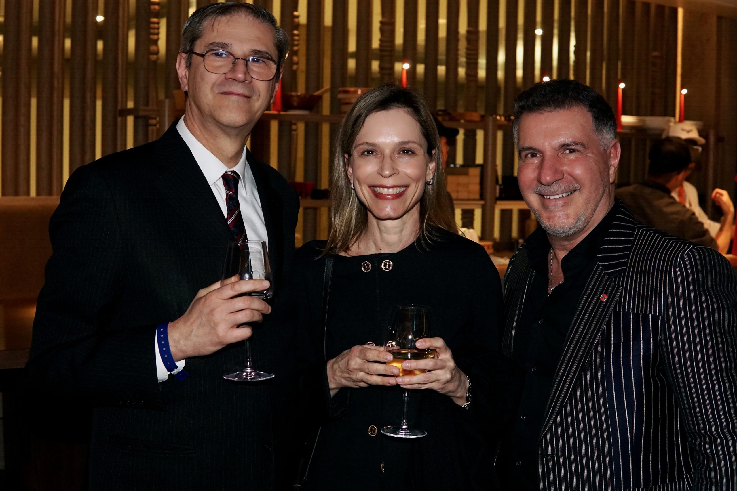 Mirroring the restaurant’s culinary narrative, Ms. Di Donato incorporates rich browns and blues complemented by a striking red accent, evoking the timeless ambiance of a traditional steakhouse, with vibrant Japanese chic influences. A tactile symphony of textiles unfolds with cotton tweed reminiscent of Bay Street attire, distressed leather, soft wool bouclé, and natural cowhide, reminiscent of rustic steakhouse charm. The marriage of natural walnut wood with traditional oak grain infuses a sense of modernity and warmth. Stone columns adorned with intricately carved bovine motifs inspired by Indigenous art serve as both structural supports and artistic expressions. Furniture boasts sleek, modern lines to create a captivating juxtaposition against ornately treated ceilings, walls, and bar areas, adding depth and intrigue to the destination’s overall ambiance.